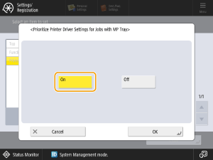 Press <Prioritize Printer Driver Settings for Jobs with MP Tray>