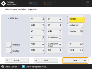 Depending on your model, <Free Size> may not be selectable. In this case, select an existing paper size, such as <A4> or <LTR>.