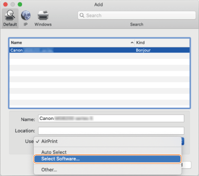 Select this machine from the list in the [Printer Software] dialog box and click [OK].