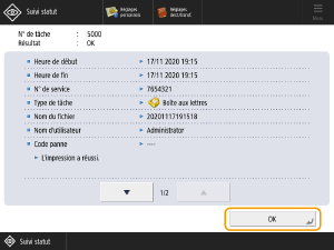 Sélectionnez la tâche d’impression dont vous vérifier les détails et appuyez <Détails>.