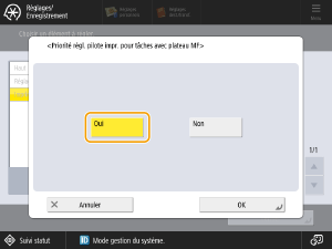 Appuyez sur <Priorité régl. pilote impr. pour tâches avec plateau MF>