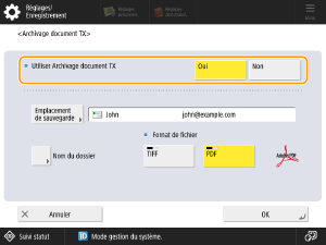 Appuyez sur <Oui> dans <Utiliser Archivage document TX>.