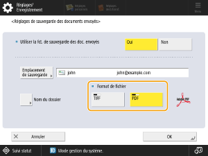 Appuyez sur <Format de fichier> et sélectionnez le format à utiliser pour enregistrer les fichiers transmis.
