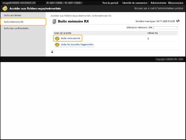 Sur la page Portail, cliquez sur [Accéder aux fichiers reçus/mémorisés].