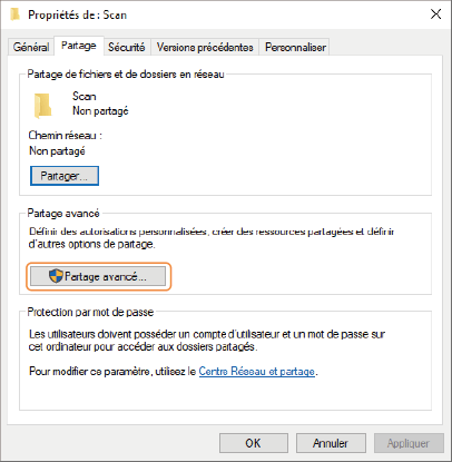 Cliquez sur [Partage avancé], dans l'onglet [Partage].