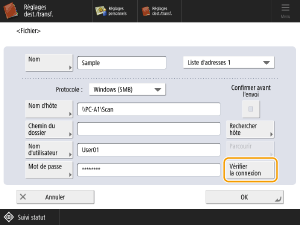 Appuyez sur <Vérifier la connexion> pour vérifier que l'ordinateur est correctement connecté.