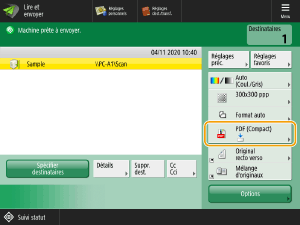 Lorsque le format <PDF>, <XPS> ou <OOXML> est sélectionné, vous pouvez configurer diverses fonctions supplémentaires. Pour ce faire, sélectionnez la fonction à ajouter.
