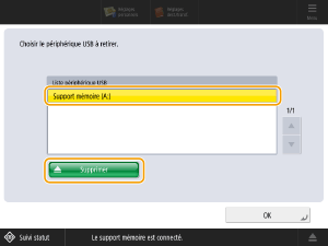 Sélectionnez une clé USB à retirer et appuyez sur <Supprimer>.