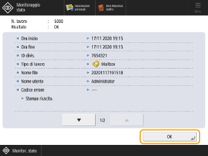 Selezionare il lavoro di stampa di cui si vogliono verificare i dettagli e premere <Dettagli>.