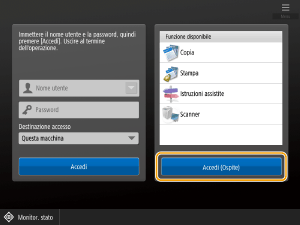 È possibile accedere alle funzioni della macchina dopo aver effettuato l'accesso.