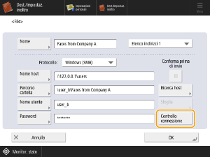 Premere <Nome file>, immettere "Fax da azienda A" e premere <OK>.