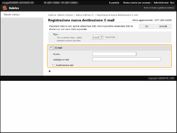 Nella pagina del portale, fare clic su [Rubrica], poi su [Elenco indirizzi 01] nella lista degli elenchi indirizzi.