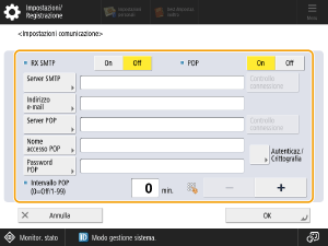 Dopo aver configurato le impostazioni, verificare la connessione <Server SMTP> o <Server POP>.
