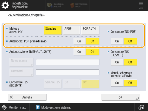 Quando si imposta l'autenticazione POP prima dell'invio o si imposta la comunicazione crittografata con il server POP