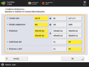 Verificare le specifiche della periferica del destinatario prima di configurare queste impostazioni. L'impostazione di condizioni non supportate dalla periferica del destinatario potrebbe causare un errore.