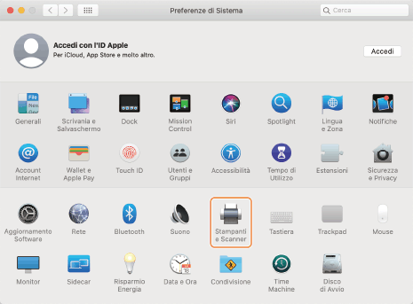 Aprire [Preferenze di Sistema] e fare clic su [Stampanti e Scanner].