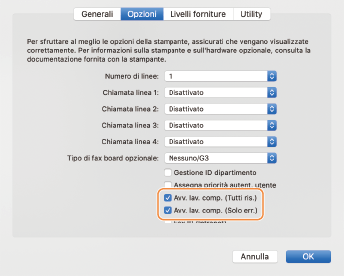 Nella scheda [Opzioni], selezionare l’impostazione [Avviso lavoro completato] e fare clic su [OK].