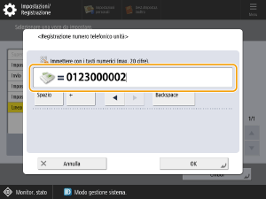 Il numero di fax per la linea 1 è stato registrato. Successivamente, registrare il nome unità.