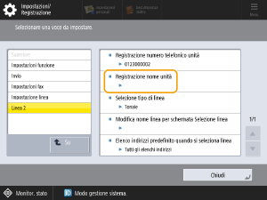 La descrizione riportata qui riguarda la registrazione di un nome unità e di un numero di fax per più linee fax nell’esempio seguente: