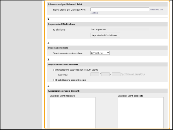 Selezionare questa casella per impostare il periodo di validità dell'account, quindi specificare [Scadenza].