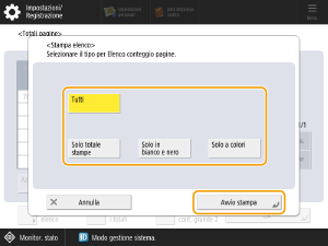 Selezionare il tipo di rapporto e premere <Avvio stampa>.