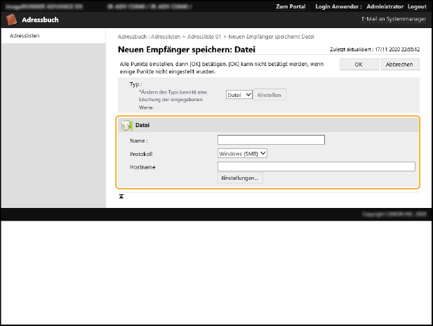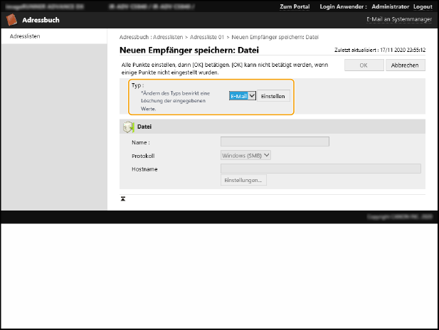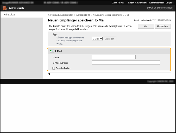 Klicken Sie auf der Portalseite auf [Adressbuch], und klicken Sie dann auf [Adressliste 01] in der Liste der Adresslisten.