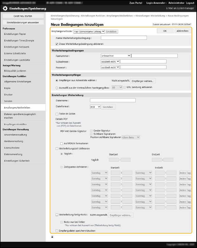Weiterleiten eingehender Faxdokumente an einen Gemeinsamen Ordner (Remote UI)