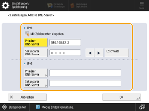 Drücken Sie <Primärer DNS-Server>, und geben Sie die IPv4-Adresse des DNS-Servers ein.