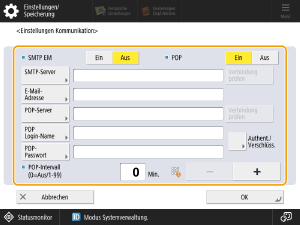 Prüfen Sie nach der Konfiguration von Einstellungen die <SMTP-Server>- oder <POP-Server>-Verbindung.