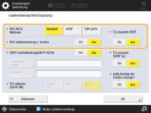 Wenn Sie die POP-Authentisierung vor dem Senden oder die verschlüsselte Kommunikation mit dem POP-Server einstellen