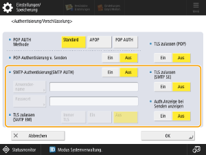 Wenn SMTP-Authentisierung und verschlüsselte Kommunikation mit dem SMTP-Server eingestellt wird