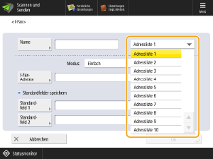 Wählen Sie einen registrierten Empfänger von <Persönl. Adressliste>, Anwendergruppe-Adressliste, <Adressliste 1> bis <Adressliste 10> oder <Adressliste für Administrator> aus.