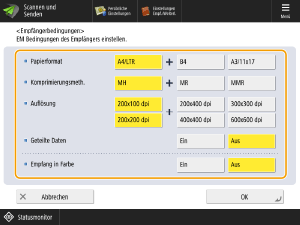 Überprüfen Sie die Spezifikationen des Geräts des Empfängers, bevor Sie diese Einstellungen konfigurieren. Das Einstellen von Bedingungen, die vom Gerät des Empfängers nicht unterstützt werden, kann einen Fehler verursachen.