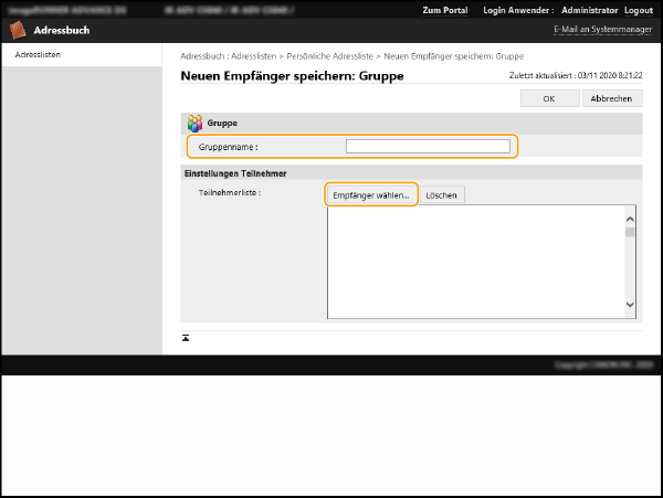 Registrieren Sie die erforderlichen Informationen, und klicken Sie auf [OK].