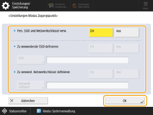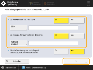 Drücken Sie für <Pers. SSID und Netzwerkschlüssel verw.> auf <Ein>
