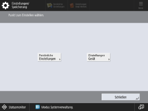 Wenn der Bildschirm Einstellungen/Speicherung angezeigt wird, wählen Sie <Persönliche Einstellungen>. Wenn Sie <Einstellungen Gerät> auswählen, können Sie keine personalisierte SSID und keinen personalisierten Netzwerkschlüssel eingeben.