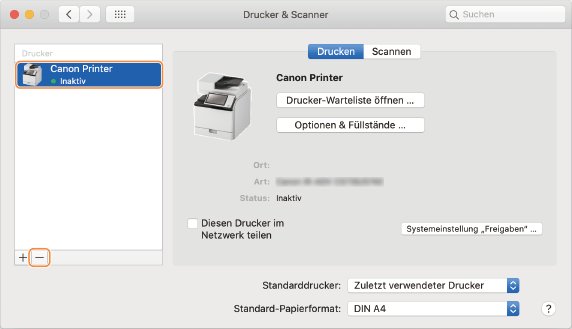 Wählen Sie Ihr Gerät, und klicken Sie dann auf [-].