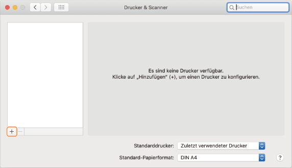 Wenn beim Klicken auf [+] eine Dropdown-Schaltfläche erscheint, wählen Sie [Drucker oder Scanner hinzufügen].