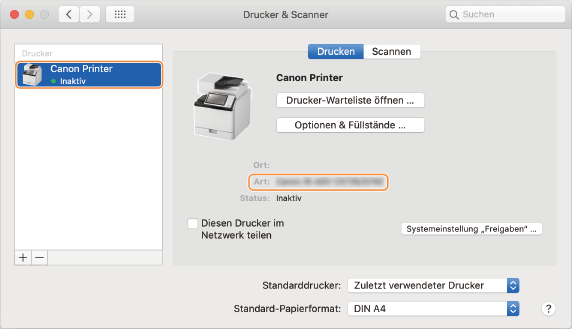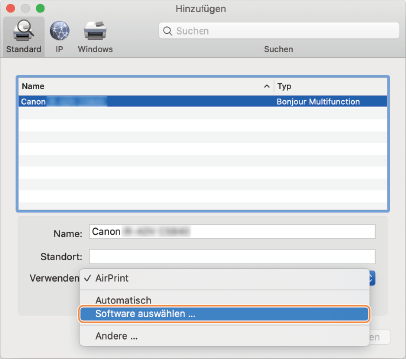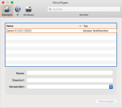 Wählen Sie einen Drucker, bei dem "Bonjour" unter [Typ] angezeigt wird.