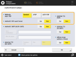 Lorsque vous réglez l’authentification POP avant d’envoyer ou de régler la communication cryptée avec le serveur POP