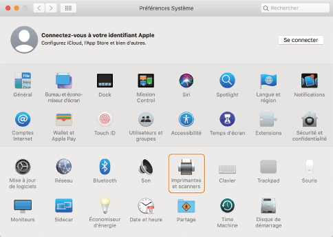 Ouvrez [Préférences Système] et cliquez sur [Imprimantes et scanners].