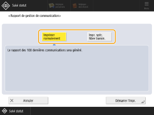 Pour imprimer les 100 entrées d’envoi/réception les plus récentes, appuyez sur <Imprimer normalement>.