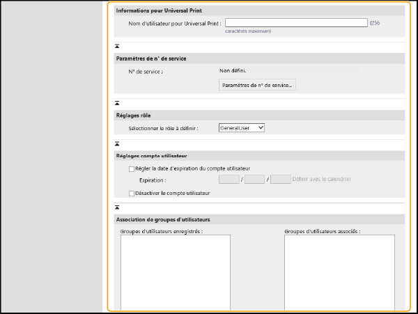 Cochez cette case pour définir la durée de validité du compte, puis spécifiez la date d’[Expiration].