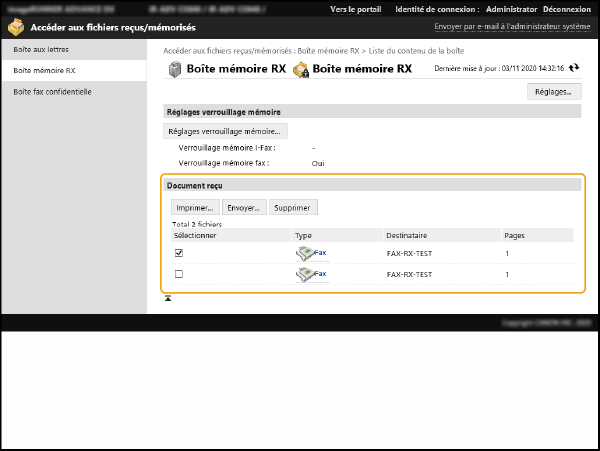 Gérer les documents enregistrés temporairement dans la boîte de réception (RX) en mémoire de cet appareil