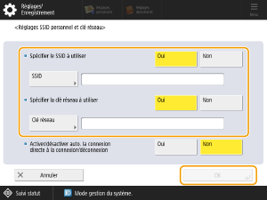 Dans <Utiliser SSID personnel et clé réseau>, appuyez sur <Oui>