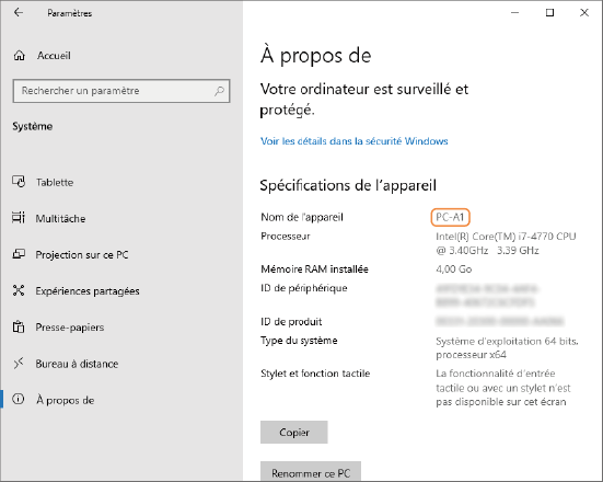 Notez le nom de l'ordinateur (nom de l'appareil) affiché.