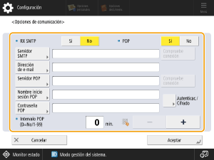 Después de configurar las opciones, compruebe la conexión <Servidor SMTP> o <Servidor POP>.