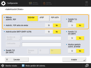 Si se establece la autenticación POP antes de enviar o se establece la comunicación cifrada con el servidor POP