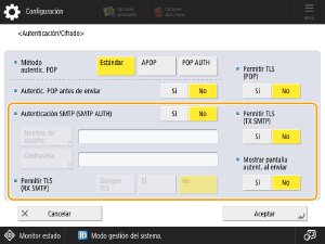 Si se establece la autenticación SMTP y la comunicación cifrada con el servidor SMTP
