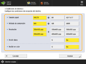 Confirme las especificaciones del dispositivo del destinatario antes de configurar estas opciones. Las condiciones de configuración que el dispositivo del destinatario no admita pueden provocar un error.